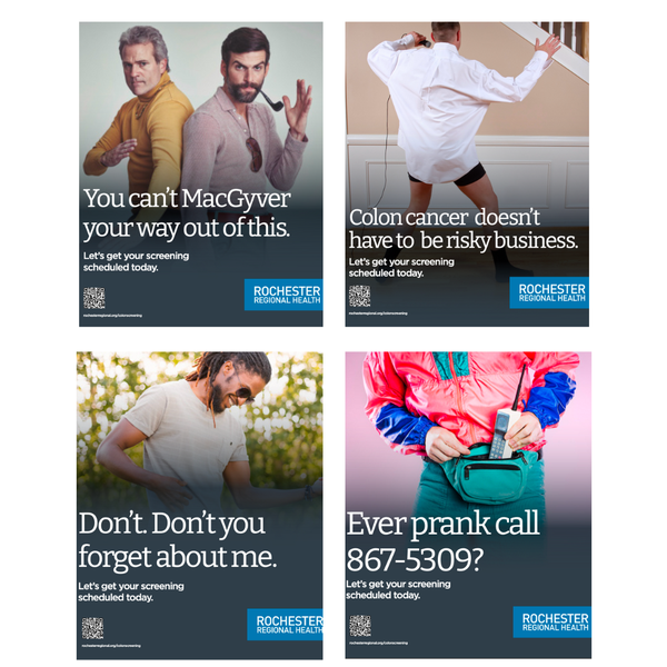 Rochester Regional Health • 10th December 2022 Colorectal Campaign A series of highly targeted messages reminding men who are 45 and older that it's time for a colonoscopy.